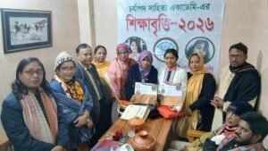 প্রথম বারের মতো শিক্ষাবৃত্তি প্রদানের উদ্যোগ নিয়েছে প্রগতিশীল প্রতিষ্ঠান চর্যাপদ সাহিত্য একাডেমি। শিক্ষা ক্ষেত্রে উৎসাহ বাড়াতে শিল্প-সংস্কৃতির সঙ্গে যুক্ত থাকা দুজন মেধাবী শিক্ষার্থীকে শিক্ষাবৃত্তি-২০২৬ প্রদান করা হয়। বৃহস্পতিবার ৮ জানুয়ারি সন্ধ্যায় চর্যাপদ সাহিত্য একাডেমির সভাপতির কার্যালয়ে আনুষ্ঠানিকভাবে বৃত্তিপ্রাপ্তদের হাতে নগদ টাকা, সনদ, টি-শার্ট, ক্যাপ ও শিক্ষা উপকরণ তুলে দেওয়া হয়।