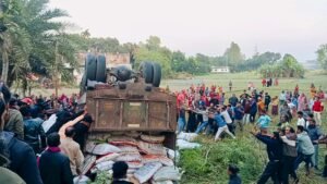 স্থানীয় সূত্রে জানা যায়- নওগাঁ সদর উপজেলার মাদারমোল্লার চারমাথা নামক স্থানে ট্রাকে লিটার (মুরগি বর্জ্য) বহন করে পঞ্চগড়ের উদ্যশ্যে যাচ্ছিল।