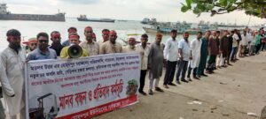 শনিবার (৩০ আগস্ট) বিকেল ৫টায় মোহনপুর লঞ্চ ঘাট সংলগ্ন মেঘনা নদীর তীরে শত শত গ্রামবাসী মানববন্ধন ও প্রতিবাদ সমাবেশে অংশ নেন।
