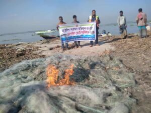 জব্দ কৃত জাল গুলো পুড়িয়ে বিনষ্ট করা হয়। এসময় উপস্থিত ছিলেন মোহনপুর নৌ-পুলিশ ফাঁড়ির সহকারী উপ পরিদর্শক মোঃ শাহজাহান, কমলেশ সরকার, মোশারফ হোসেন, মৎস্য অফিসের ক্ষেত্র সহকারী ও কর্মচারী বৃন্দ। গত ১৯ অক্টোবর দুপুর আড়াই টা হতে বিকাল সাড়ে ছয়টা পর্যন্ত মেঘনা নদীতে অভিযান পরিচালনা করে ৩০.০০০ হাজার মিটার কারেন্ট জাল জব্দ করা হয়। জব্দ কৃত জাল গুলো পুড়িয়ে বিনষ্ট করা হয়। এসময় উপস্থিত ছিলেন উপজেলা সিনিয়র মৎস্য অফিসার বিজয় কুমার দাস, মোহনপুর নৌ-পুলিশ ফাঁড়ির উপপরিদর্শক মিলন, কমলেশ সরকার, মোশারফ হোসেন ও মৎস্য অফিসের ক্ষেত্র সহকারী ও কর্মচারী বৃন্দ।