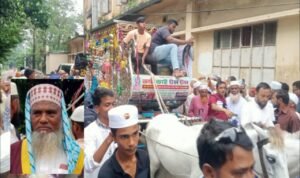 এর আগে সকালে মসজিদের বিদায়ী ইমাম মাওলানা আব্দুল খালেক এর হাতে এলাকাবাসীর পক্ষ থেকে নগদ টাকা তুলে দেন মুসল্লিরা। এছাড়াও শত শত মুসল্লির উপস্থিতে ঘোড়ার গাড়িতে ওঠানো হয় ইমামকে। সামনে-পেছনে মোটরসাইকেলের বহর নিয়ে ইসলামের বিভিন্ন স্লোগানে স্লোগানে ইমামের নিজ বাড়িতে পৌঁছে দিয়ে আসা হয়।