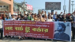 শরিফ ওসমান হাদিকে হত্যার প্রতিবাদে বেনাপোলে বিক্ষোভ মিছিল ও লং মার্চ টু বর্ডার