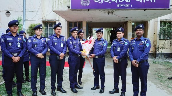 বৃহস্পতিবার (২২ ফেব্রুয়ারি) চাঁদপুর জেলার হাইমচর থানা বার্ষিক পরিদর্শন করেন জনাব মোহাম্মদ সাইফুল ইসলাম বিপিএম, পিপিএম , পুলিশ সুপার, চাঁদপুর। থানায় আগমন করলে পুলিশ সুপার মহোদয়কে ফুলেল শুভেচ্ছা ও গার্ড